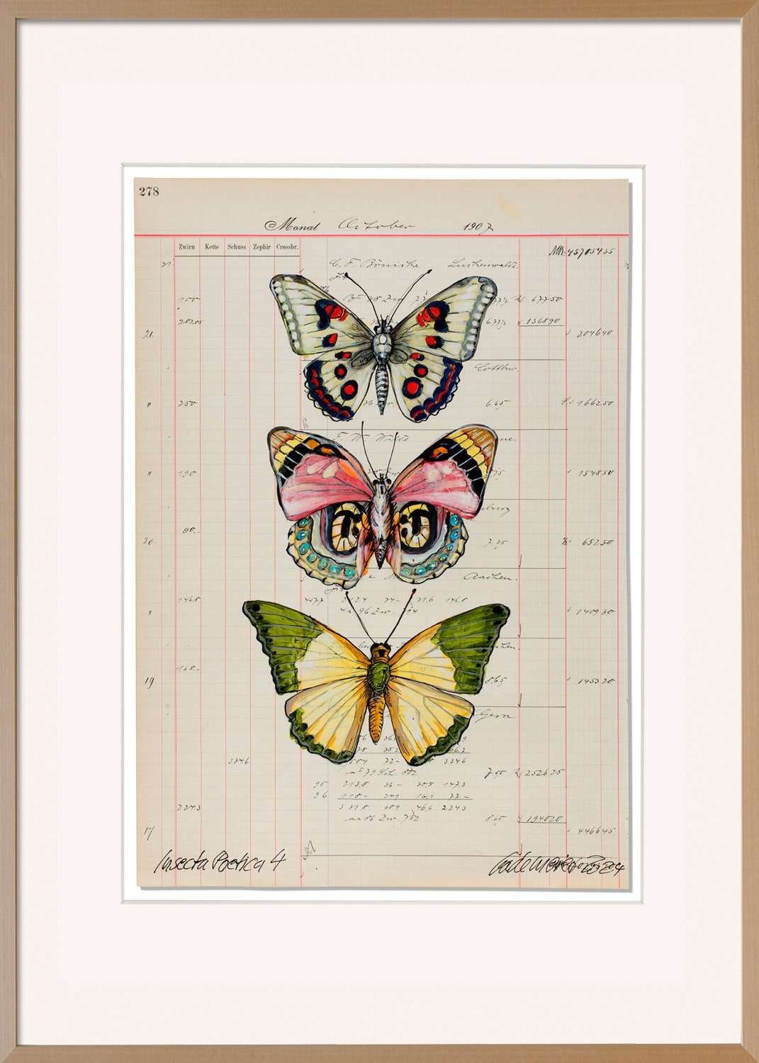Mit Insecta Poetica 4 schafft Gatzemeier ein Werk, das durch Farbigkeit, Komposition und konzeptuelle Tiefe besticht. Die Schmetterlinge leuchten in fein nuancierten Tönen, ihre Flügel scheinen beinahe zu vibrieren – und doch sind sie eingebettet in eine fast kontemplative Ordnung. Diese Verbindung aus Malerhandwerk, intellektuellem Konzept und ästhetischem Anspruch macht die Serie zu einem herausragenden Beitrag in der zeitgenössischen Kunst mit Schmetterlingen.